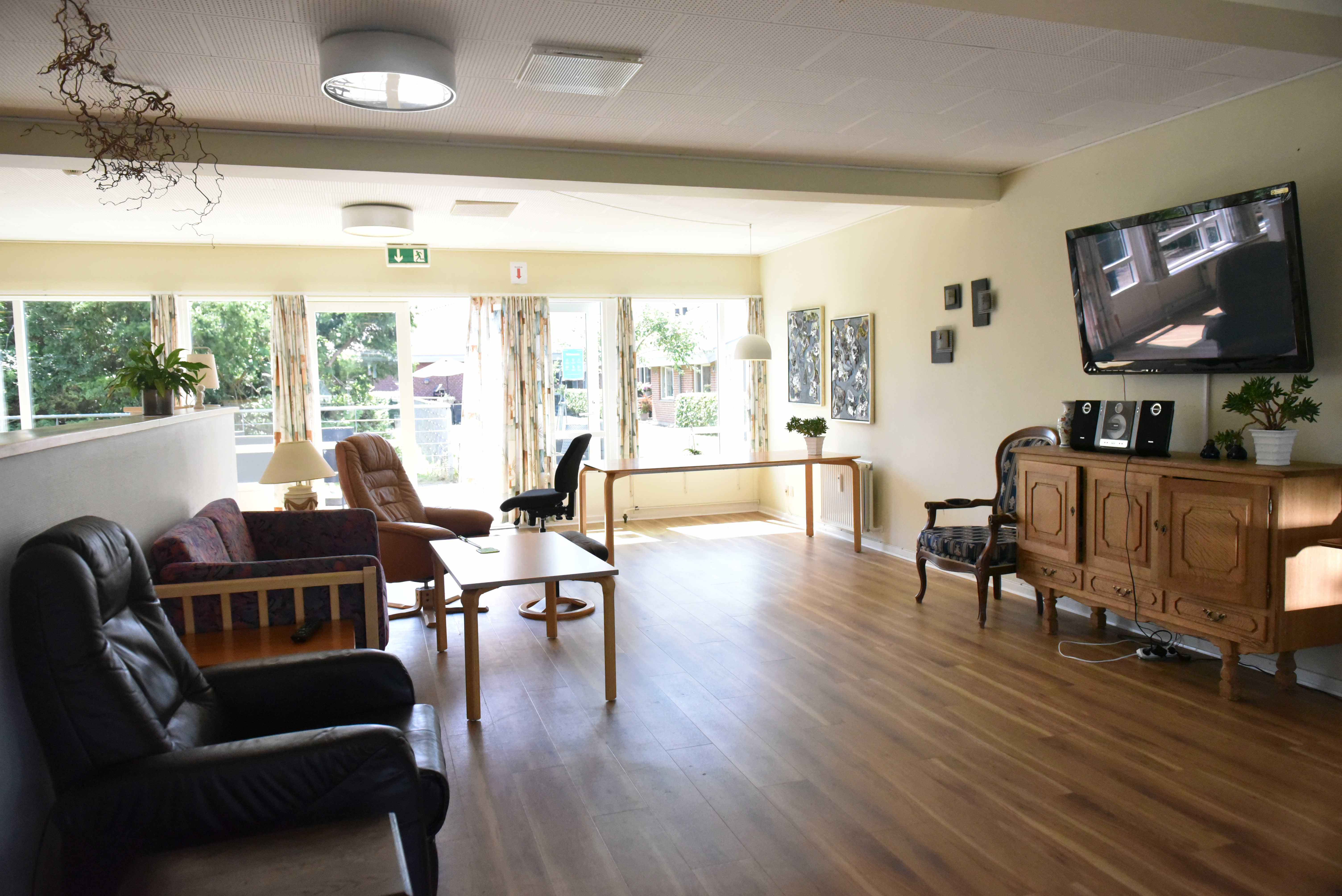 Terneparken har mange dejlige fællesrum. På vores lange gange har vi små hyggelige kroge, hvor du kan få en lille sludder med din nabo.