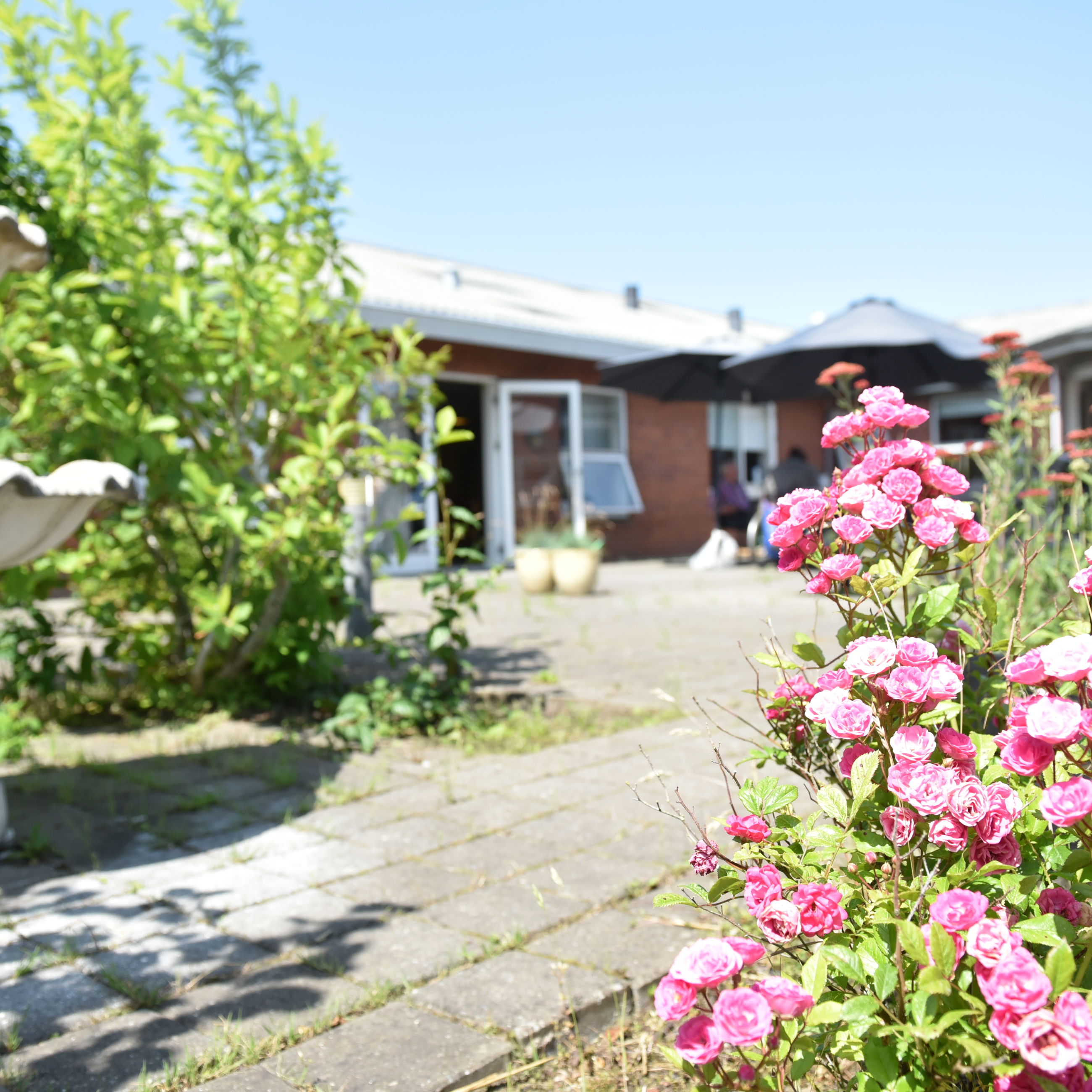 På Terneparken er der også hyggelige udeområder. Vi har en skøn atriumgård med en lille sansehave og lækre solkroge. Gården er flisebelagt, så du også kan komme rundt, selv om du er i kørestol eller bruger rollator. Vi har også træningsredskaber i vores udeområde.